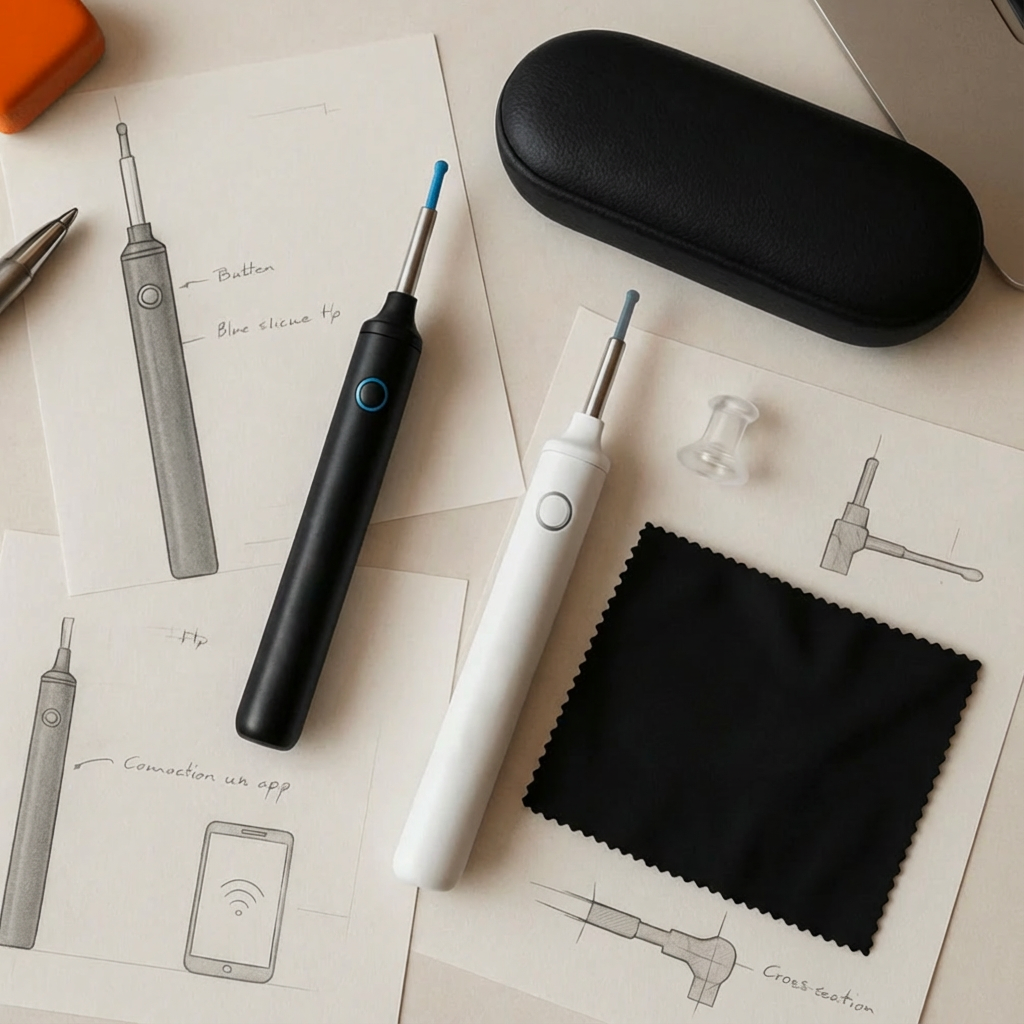 En combinant une caméra haute définition, des embouts en silicone souple et une application intuitive, nous avons conçu une solution qui transforme un geste délicat en une expérience simple, rassurante et contrôlée.
